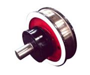 车轮的磨损主要由下述两点造成:第一是接触疲劳,其原因是由于车轮表面硬化层浅,基体硬度偏低,在强大的核触应力作用下,淬硬层与基体过渡区距表面20-25mm处产生塑性变形并形成裂纹,扩展至表面选成疲劳脱落:第二是滑动摩擦,当车轮运行时,轮缘内侧面与轨道两侧面接触产生滑动磨损,其原因是起重机承载及车轮与导轨自身尺寸精度、结构等原因而产生的常见磨损形式。